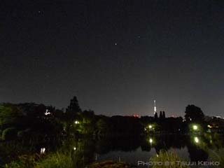 右のほうに見える、のっぽな建物はスカイツリーです。